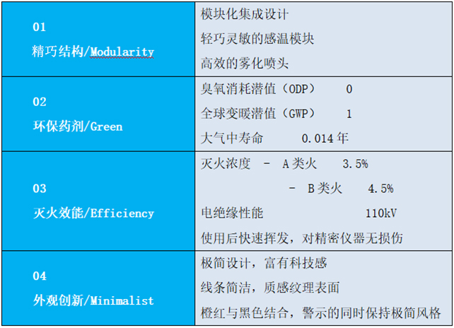 本產(chǎn)品是一種應(yīng)用于小型封閉空間如配電柜、電表箱、網(wǎng)絡(luò)服務(wù)器、新能源電池倉、充電樁、電梯控制柜等火災(zāi)防護(hù)的新型自動(dòng)滅火裝置。